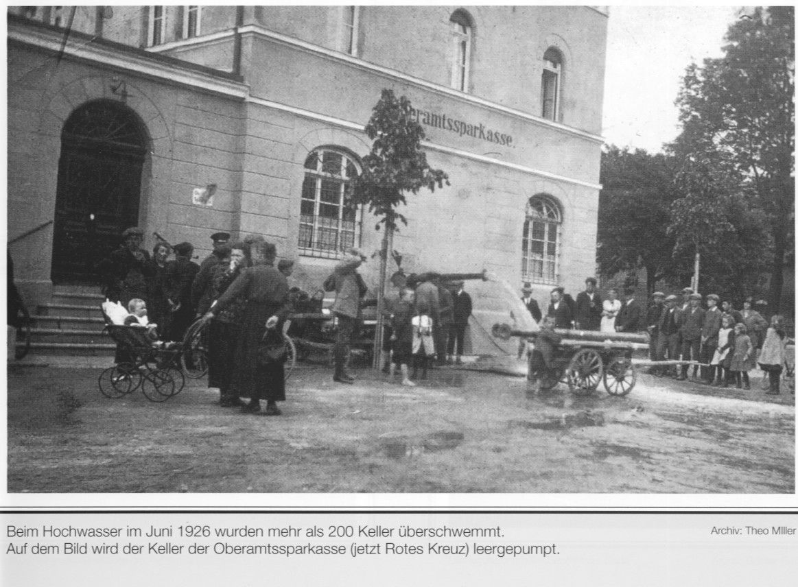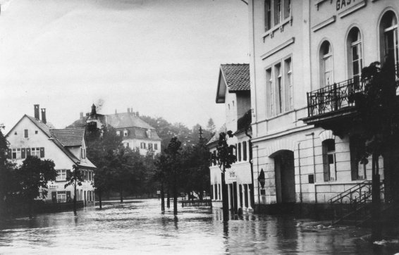 Mittelstraße beim Hochwasser (Gebäude mit Aufschrift Amtsblatt ist heute Cafe Milch & Zucker